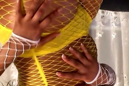 Naughty Honey In Yellow Fishnets Deep Throats And Pokes In sofa bride