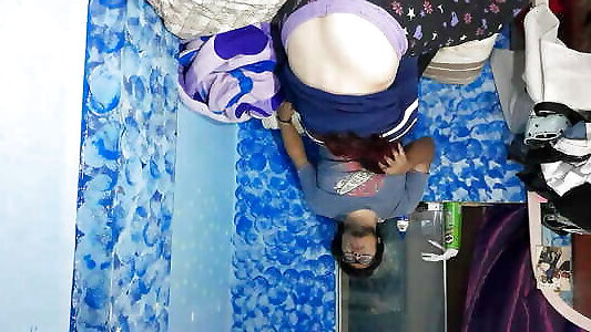 Horny mom undresses and masturbates with moans. Naughty sexy milf tries on naked clothes. Hairy latina pussy tries on clothes