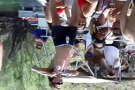 Gfs take a swim and plumb each other with toys in the grass