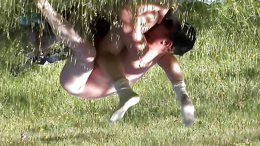 Wife gets spitroast and double creamepie by husband and his friend in public corn field