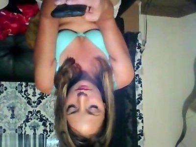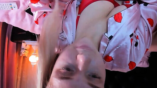 Platinum-blonde webcammodel stripped to the waist mfc