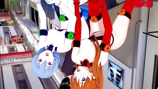 Asuka and Rei have group threesome : Neon Genesis Evangelion 3D Hentai Parody