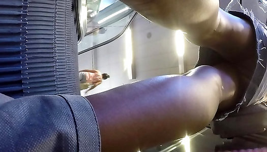 chinese office damsel cant stash her hairy twat in this too brief mini-skirt !
