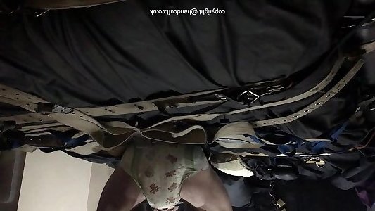 Zentai stretch pants chain restrain bondage getting off