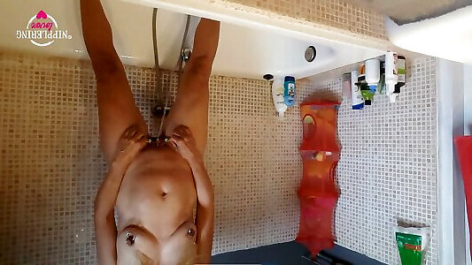 Ivy lathering up those monstrous boobs and snatch in bathroom...