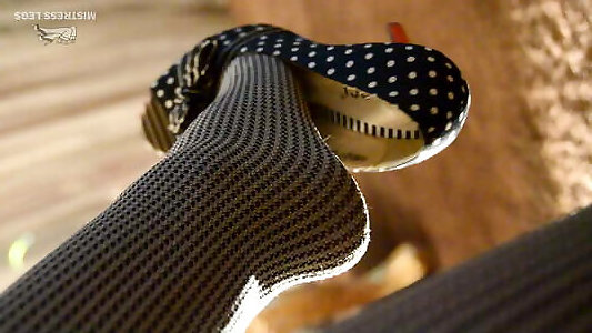 Domina Alexya teasing you with her feet in black pantyhose