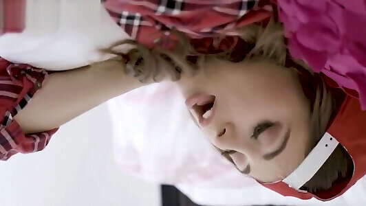 Petite girl in a doll costume likes it rough