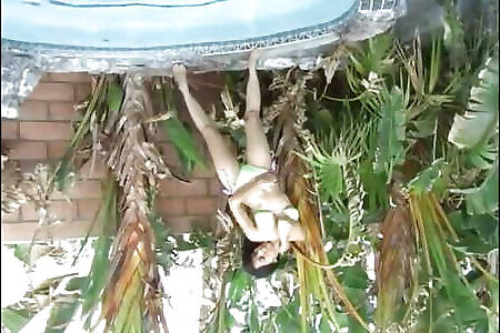 Outdoor oily bare photo trap hypno training with a dark-haired teen Leah