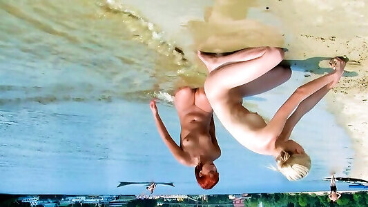 Skinny and young nudist ladies fool around on the beach