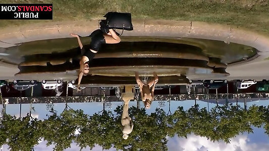 Public gargling slut displays public nudity outdoor