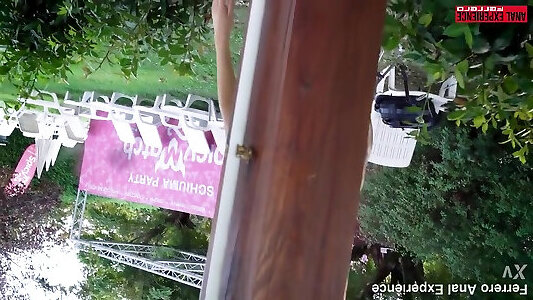 Super-steamy ash-blonde gives a head in building on a tree