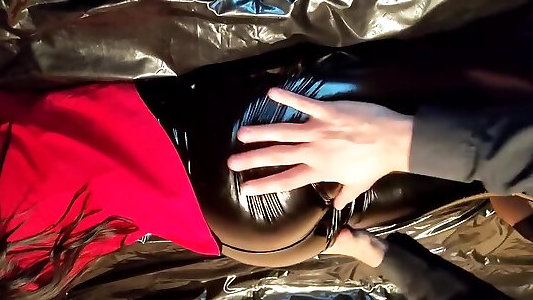 Penetrate My Cock-squeezing Slit In Torn Leather Wetlook Leggings