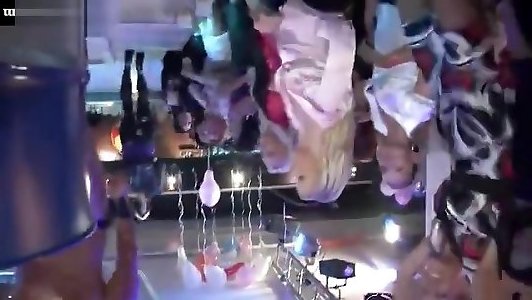 2 cockslut Brooke Belle and Lorena leather lace catfights ravage on the pub table
