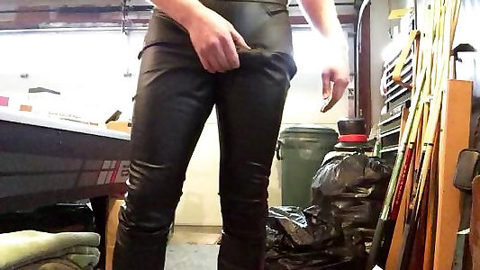 slutty cd playing with herself in skintight glossy pvc
