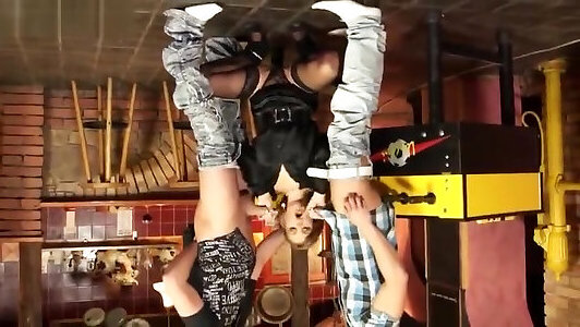 exciting stretching in short shorts