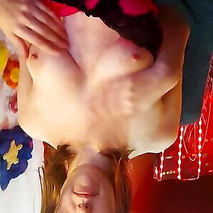 nudist lush girlfriend, stripped to the waist loosening, showcases her hooters puffies