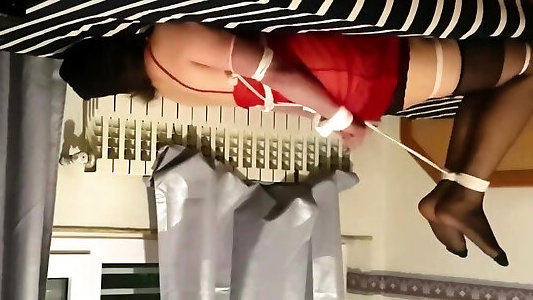Sparkling wine enema, real orgasm, bondage, submissive slave