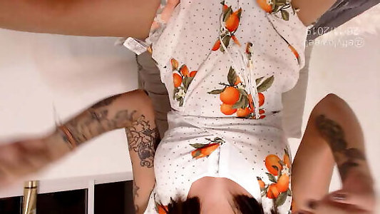 Bony female fingering her vulva at home while I film