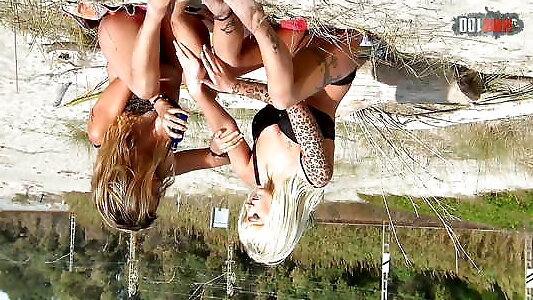 Hot threesome on a nudist beach