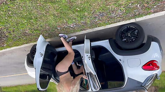 Lesbians salivating, munching and urinate in a van