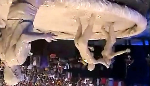 Stacy Thorn guzzles torrid jizz from two spewing chisels
