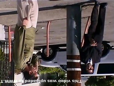 Splendid tramps practising in inhaling spears and poking