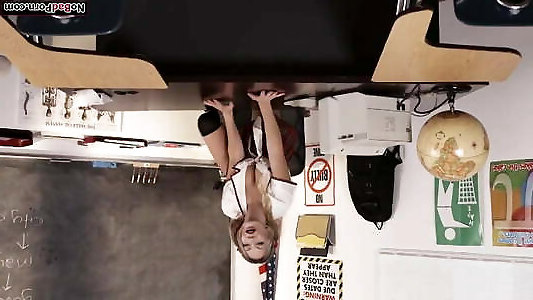 Light-haired schoolgirl with puny congenital funbags lures her educator in the classroom