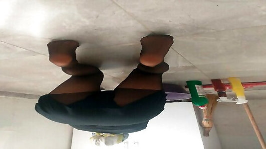 Cleaning lady in hijab and pantyhose