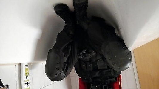 piss in dark-hued swat uniform