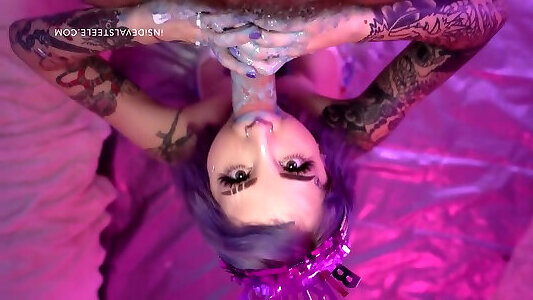 Purple haired goth dame mfc sexy emma lee Steele gives her head and gets torn up hard