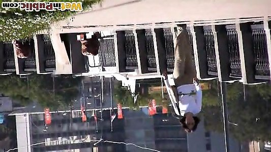 Chick wets her pants on a city embankment