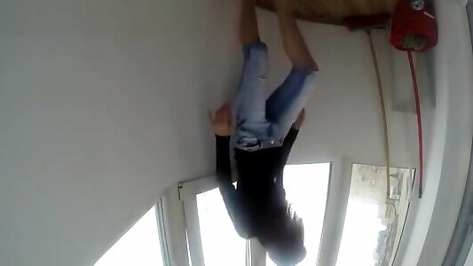 Cute girl in jeans stuck in the barrel while cleaning inside. And best husbands friend come to help and fucked her. 4K
