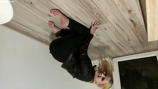 A chick with a sumptuous arse tries on cock-squeezing bondage drugged and fingerblasting in them, wet panties.