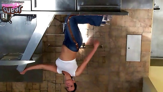 A dame with a splendid culo attempts on cock-squeezing jeans and finger-banging in them, moist underpants.