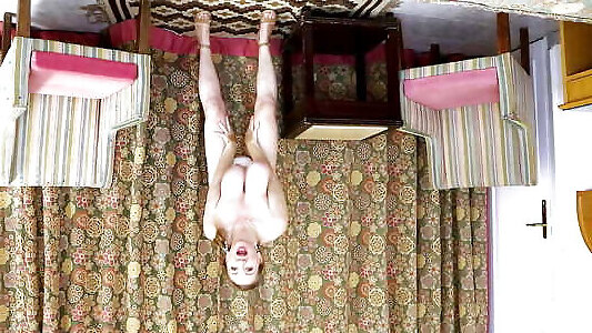 Hot milf MariaOld shaking huge natural boobs: striptease in white lingerie