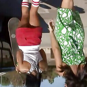 lesbisches skatermädchen folgt der brünetten nach hause, um analsexspielzeug für sich selbst zu benutzen