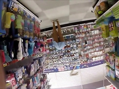 teenager in cutoffs über ladentisch gebogen