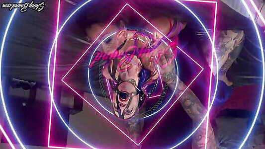 corded tatted opfer mit großen titten reitet eine yam-sized black strap dildo