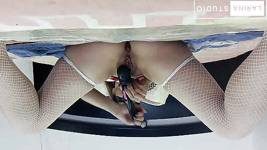 spektakuläre first-timer-dame spielzeug ihr xxl geschwollene nub auf der kneipe