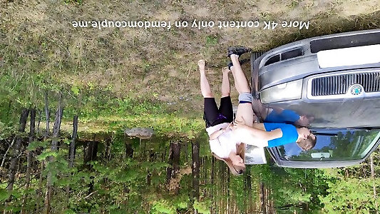 unersättliche schulmädchen fahren in den wald und boink über das auto gummihaube