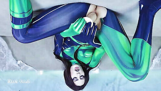 verrückte schlampe shego reitet riesigen dildo bis zum spritzen und nimmt ihn in ihr enges arschloch und öffnet es weit!