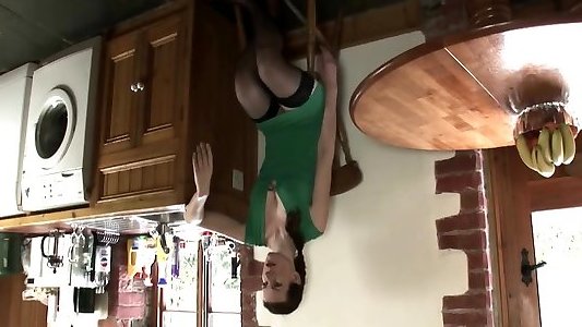 amante esposa disciplina a su marido mariquita en la cocina