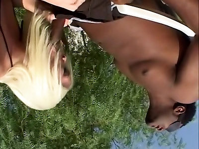 sexy puta rubia chupando pollas le encanta montar una enorme polla negra en su coño