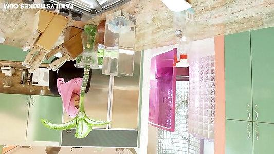 usando su juguete fucky-fucky para bajar y el orgasmo como un jefe