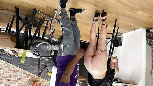 disciplina rígida culo flagelando en la silla controlando al padrastro