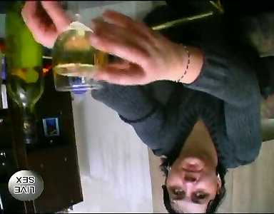 dirtygardengirl en sexy redecilla folla una gran botella de vino en la cama y prolapso anal
