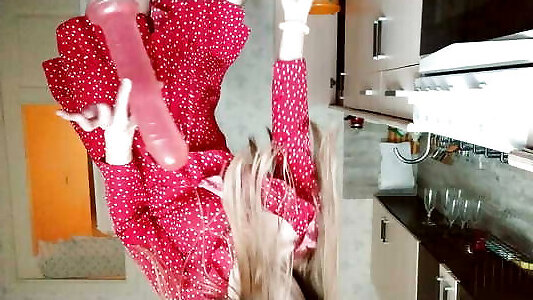 un consolador largo está extendiendo mi coño y la leche está saliendo de mis pechos