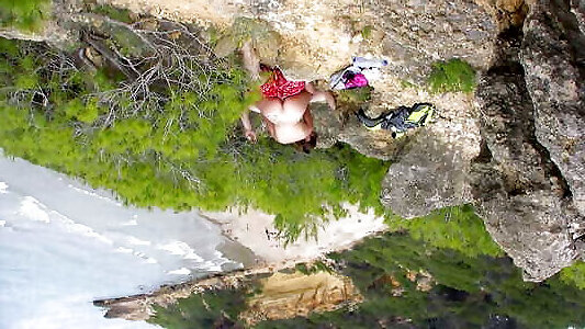 nena hispana sopla y folla en una ruta de senderismo