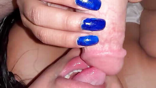 sexy adolescente latina apretada chupa la polla con uñas azules sexy
