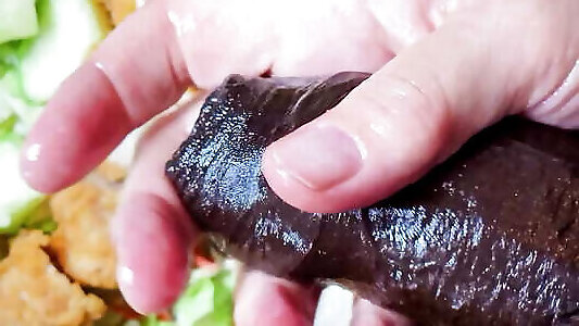 pajeo al repartidor con semen en la ensalada de pollo y me la como, después de que él lame mi gran coño gordo - bbw avidol hot sex car públicamente, grueso